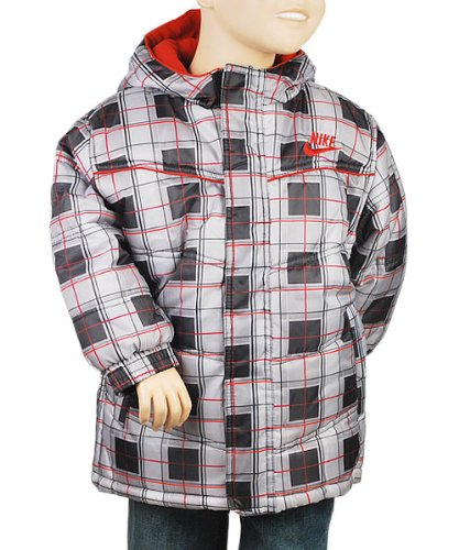 You and your little guy will love how this Nike jacket combines warmth, comfort, and legendary athletic styling. With a rugged shell, full insulation, and a polarfleece lining that extends to the hood, this jackets sure to stop snow, ice, and the coldest winter wind. The all-over plaid, with red accents and an embroidered logo, adds more than just a little style to the equation. Two pockets, Velcro zipper placket, elastic cuffs. In this jacket, winter will be his new favorite season. 100% Polyester Machine Wash Cold Made in China