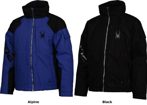Rollaway Hood ? Critical Seams Taped ? Data Card Pocket ? Internal Mesh Goggle Pocket ? Brushed Micro Fiber Inner Collar ? Custom Chamois Lens Wipe on Shock Cord ? Internal Powder Skirt with Snaps and Gripper Elastic ? Internal Drawcord at Hem ? Multiple Pockets ? Custom Embossed Taffeta Lining ? Inner Fleece Cuff at Wrist ? Spyder Logo Embossed Velcro ? Custom Spyder Logos, Hardware and Zipper Pulls